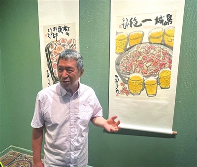 《青岛艺趣》开展即火爆。贾真耀展出的水墨辨识度极高,具有浓郁的青岛地域文化色彩。不仅有本土文艺圈朋友纷纷前往捧场,跟贾真耀一起在画作前回忆共同的过往生活,更有外地游客带着新奇在展览中寻找“青岛味道”,“很多游客要跟我合影。”贾真耀笑言合影合到累。青岛市美术馆自主策划的这场展览放在旅游季的末期,是青岛艺术家送给外地游客的“礼物”。当然,《青岛艺趣》更是贾真耀画给家乡的城市生活画。