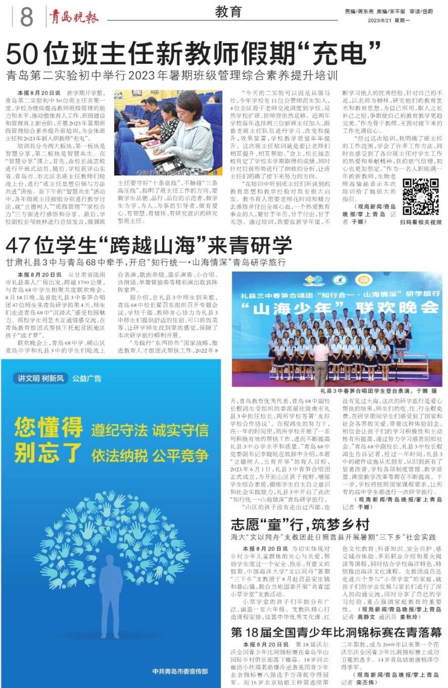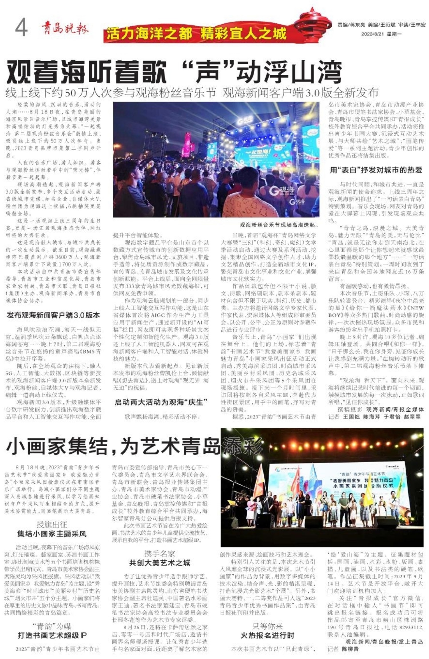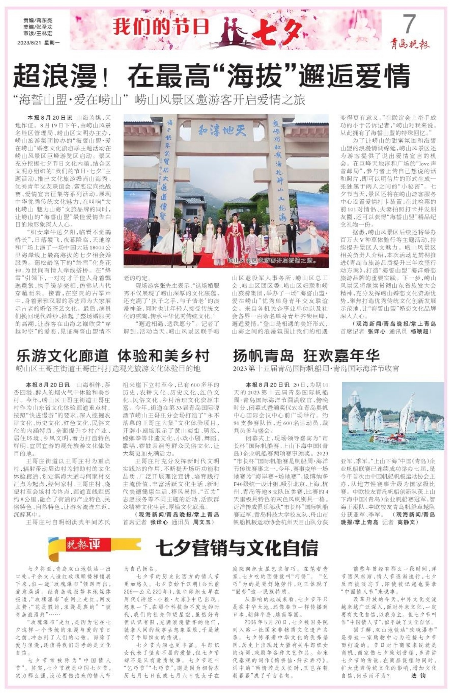 A01 头版 A02 活力山&海 精彩i崂山 A03 新观察 A04 活力海洋之都 精彩宜人之城 A05 民生新闻 A06 强信心 稳经济 促发展 A07 我们的节日 七夕 A08 教育 A09 活力海洋之都 精彩宜人之城 A10 打造乡村振兴齐鲁样板 A11 民生24小时 A12 艺术之城