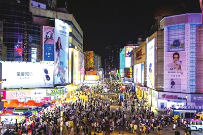 当夜幕的序曲轻轻奏响,台东步行街上,充满复古气息的灯牌渐次亮起,各式特色小吃摊位上煎炒烹炸声夹杂着吆喝声、嬉笑声,吸引着不少市民和游客前来休闲消费,感受浓浓人间烟火气。