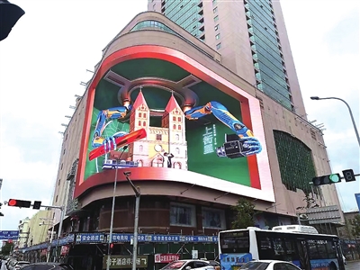 中山路百盛大厦外墙上的巨幅裸眼3D大屏。