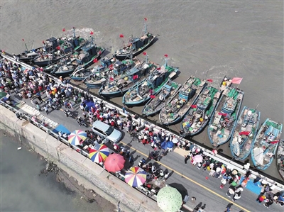 9月1日,黄渤海伏季休渔期结束,即墨区有600多艘渔船竞相驶出渔港,沿海也迎来了海上渔业生产的繁忙期。9月2日,码头上运送渔获的拖拉机、货车进进出出,一筐筐渔获堆成了“小山丘”。