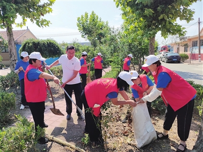 蓝晋波与志愿服务队队员们清理村庄卫生。