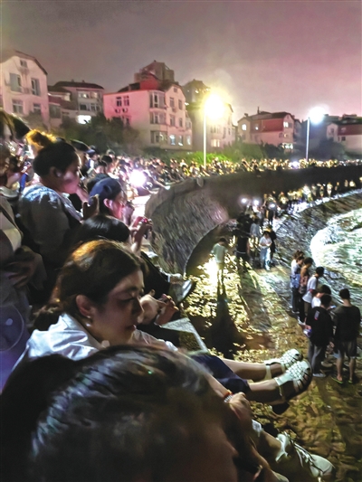 一片小小的“荧光海”让沉寂的八大峡海滩成为青岛的“顶流”。近段时间,每到深夜,人们从城市的四面八方涌向八大峡新村附近,期待着见证传说中的“荧光海”。9月5日晚11时30分左右,记者在八大峡海滩附近看到,这片白天人不算多的地方,深夜时分竟然挤满了等待见证奇迹的人群,紧靠海边的西陵峡路部分路段被私家车堵得水泄不通。巨大的人流也让商家看到了机会,八大峡海滩附近还聚集起了小型夜市。