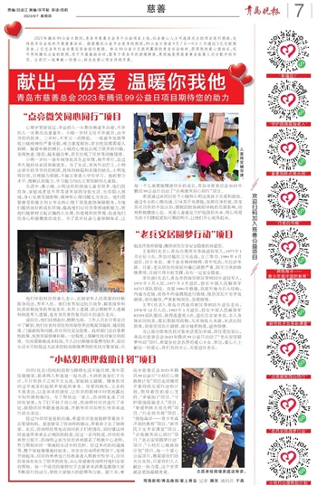 2023年腾讯99公益日期间,青岛市慈善总会多个公益项目上线,社会爱心人士可选择关注的项目进行捐助,支持我市社会组织开展慈善活动。根据腾讯公益平台发布的规则,99公益日将在9月7日—9日三天通过3亿元配捐资金、1亿元全年行业非限定资金进行配捐。参与99公益日互联网募捐的青岛社会组织,获得您的爱心捐助后,还可得到腾讯公益的配捐,用于开展救助活动,服务于青岛市的困境群体,更好地发挥慈善事业在第三次分配中的作用。让我们一起奉献一份爱心,助力此爱心项目持续开展。
