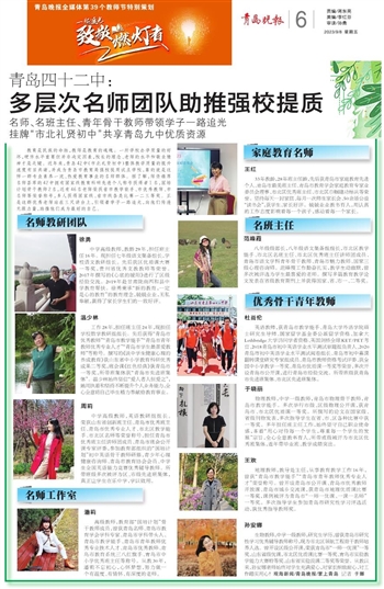 教育是民族的命脉,教师是教育的魂魄。一所学校办学质量的好坏,硬件水平重要但并非决定因素,校长的理念、老师的水平和敬业精神才是关键。近年来,青岛42中(市北礼贤初中)整体教学质量的提升速度有目共睹,并成为青岛市教育局强校提质试点学校,靠的就是这样一群专业素养一流、热爱教育事业的名师群体。据了解,师资雄厚名师荟萃的42中拥有国家级教育科研先进个人称号获得者1名,国培计划骨干教师2名,还有46名老师荣获省市教学能手、市优秀教师、市名师等荣誉称号,多人获得国家级、省市级各类比赛一二三等奖。正是这群优秀老师站在三尺讲台上,引领着学子一路追光,向他们传递无限力量,助推他们成为最好的自己。