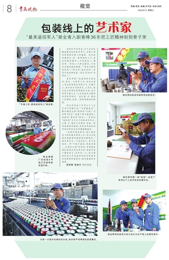 青岛啤酒厂包装部线长郝全青,曾是一名海军士兵,退役后进入青岛啤酒股份有限公司,从操作工,逐步成长为值班长、工段长,最后成为啤酒包装领域的专家,先后获得齐鲁工匠、山东省富民兴鲁劳动奖章等称号。他以慢、专、精的工匠精神,把每一瓶啤酒都做到极致。