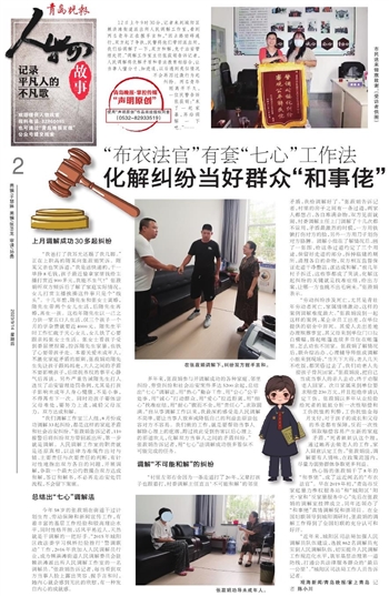 热心肠的张菽娟干了8年的“和事佬”,成了远近闻名的“布衣法官”。早在2019年初,“青岛市反家庭暴力维权服务站”和“城阳区‘阳光·家和’反家暴服务中心”先后在张菽娟的调解室挂牌成立,同年还领办了“和事佬”真情调解促和谐项目。在全国妇联领导到城阳调研时,张菽娟的调解工作得到了全国妇联的充分认可和好评。