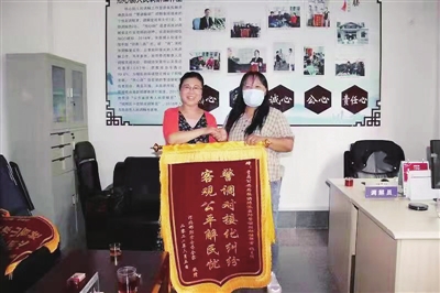 今年58岁的张菽娟在街道干过计划生育、劳动保障和新闻宣传工作,有着丰富的基层工作经验和较高理论水平,同时性格开朗,话风平易近人,天然就是干调解的一把好手。“2015年城阳区政法委学习枫桥经验推行‘警调联动’工作,2016年我加入人民调解员行业,成为棘洪滩街道人民调解委员会驻棘洪滩派出所人民调解工作室的一名调解员。”张菽娟告诉记者,每当看到双方当事人脸上露出笑容、握手言和时,她内心就会感到无比的欣慰,有一种发自内心的成就感。