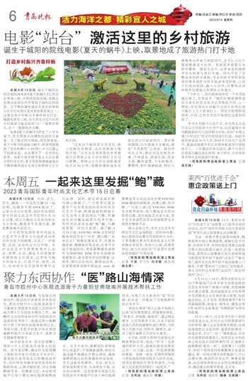 本报9月13日讯 诞生于城阳区的首部院线电影《夏天的蜗牛》已在北京等地上映,并即将登陆岛城,有眼尖的观众在预告片里看到了城阳区的场景。位于棘洪滩街道东毛家庄的翠林云庄乡村乐园正是电影的取景地之一,这里也是乡村振兴齐鲁样板先行区。随着电影的上映,东毛西毛示范片区的乡村旅游可能会延续“五一”假期的势头,在十一假期再次火爆。