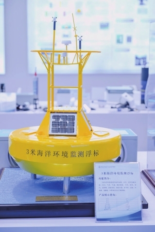 山东省科学院海洋仪器仪表研究所展示了其自主研发的海洋监测浮标系列产品,这些浮标可以在海上对天气情况进行监测,并且可以准确监测台风的形成和走向。