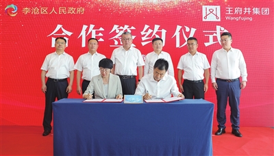 本报9月21日讯 又一国内商业巨头落子李沧: 21日下午,李沧区人民政府与首旅集团旗下王府井集团举行合作签约仪式,双方正式签署战略合作框架协议。王府井集团将和李沧区一道,全力推进李沧北部和东部片区两大项目。