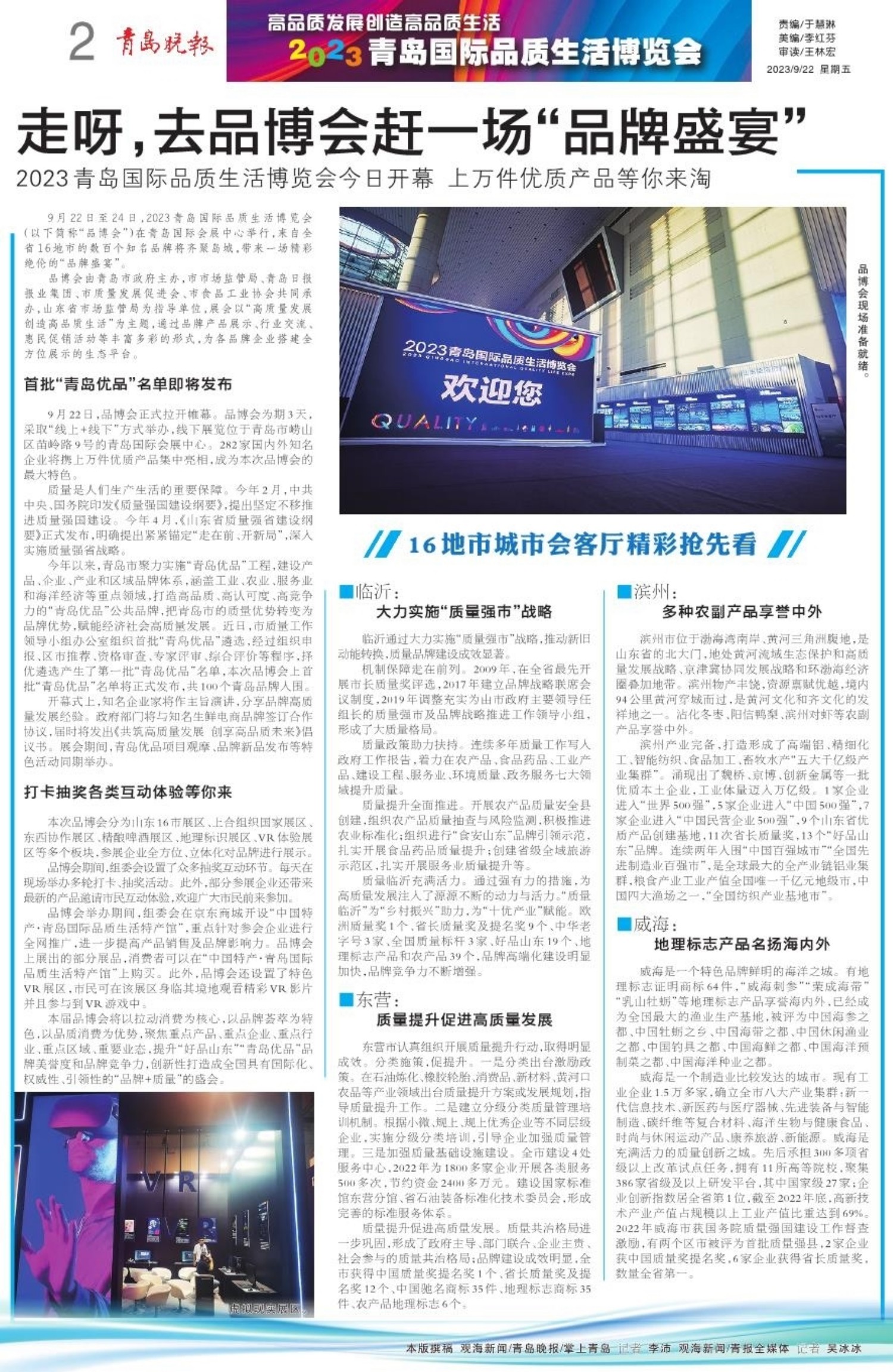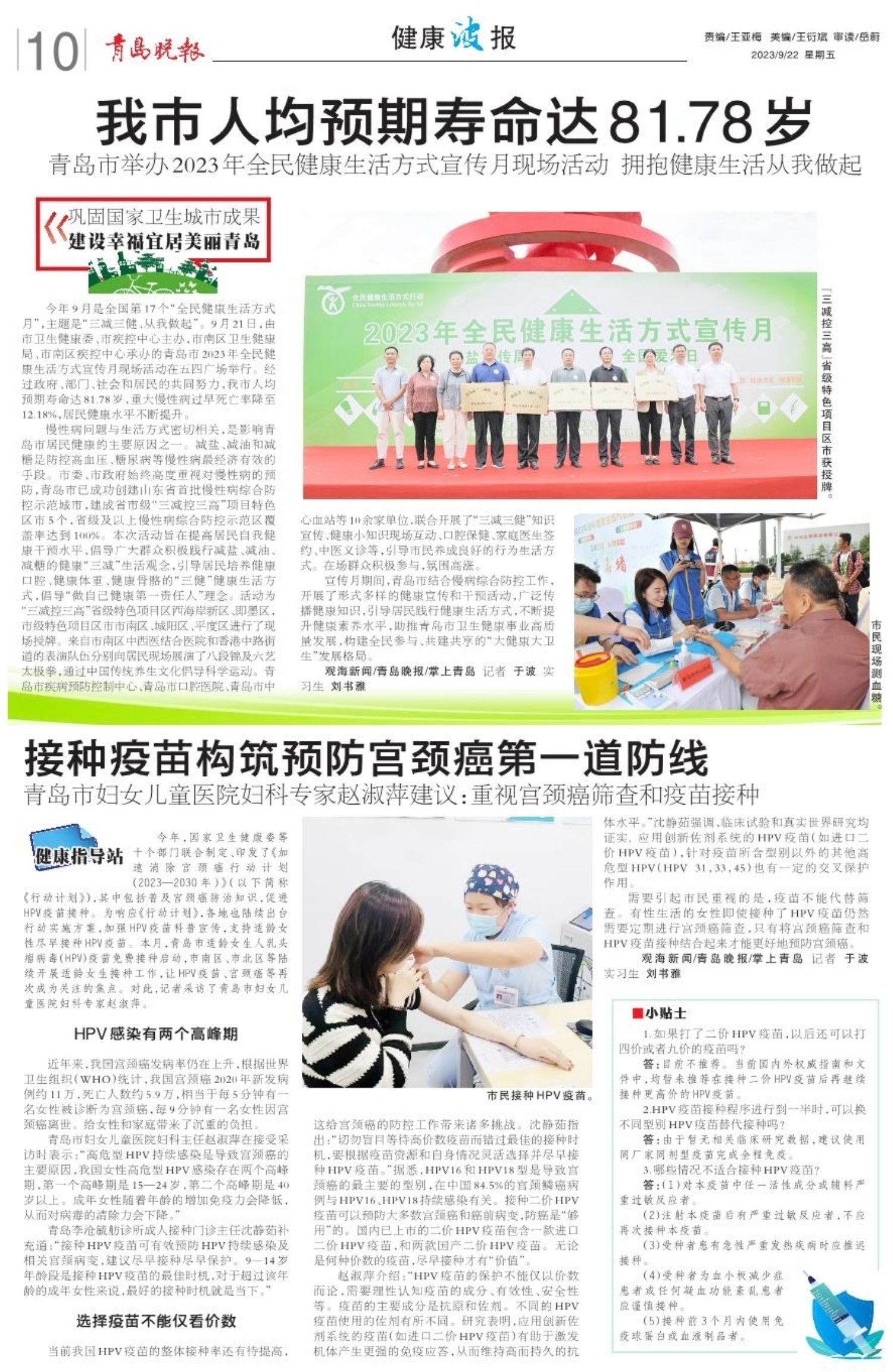 A01 头版 A02 2023青岛国际品质生活博览会 A03 权威发布 A04 活力海洋之都 精彩宜人之城 A05 活力海洋之都 精彩宜人之城 A06 城事 A07 城市更新建设 让生活更美好 A08 城事 A09 资讯 A10 健康波报 A11 健康波报 A12 生活周刊 A13 关注 A14 关注