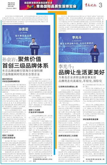 海尔是青岛为之骄傲的品牌。海尔的品牌创建之路已经成为中国企业借鉴学习的范本。9月22日,2023青岛国际品质生活博览会开幕式现场,海尔集团副总裁孙京岩作了题为《全球领先的美好生活和数字化转型解决方案服务商》的演讲,系统阐述了海尔如何探索生态品牌,并建立三级品牌体系实现全球创牌的创新路径。