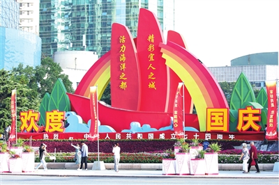 随着国庆节的到来,岛城精心布置了多个国庆主题花坛,庆祝中华人民共和国成立74周年。在市区的主干街道,五星红旗鲜艳夺目,把城市映衬得朝气蓬勃,浓烈的“中国红”洋溢着热烈喜庆的节日氛围。五四广场“欢度国庆”主题花坛吸引不少行人驻足观赏拍照。 徐常青 摄影报道