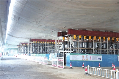 青岛市政空间开发集团所属城建公司重庆路快速路项目技术负责人董健介绍:“本次顶升施工历时35天,共计63个行程,采用PLC电脑控制系统进行操作,在确保安全基础上,有效缩短施工周期约20天,同时采用绿色环保工艺,实现施工过程无噪音、无扬尘,相关施工改造技术达到国内先进水平。”所谓桥梁顶升,是指通过千斤顶及其他辅助设备,在不改变桥梁形态的前提下,将桥梁安全地顶起升高至所需高度的一种新型桥梁纠偏技术。