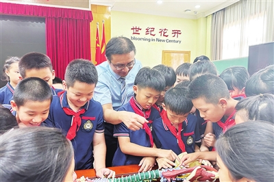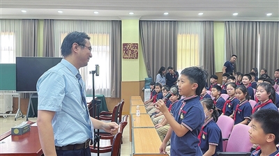 在青岛平安路第二小学,孙辰辉和学生们进行互动。