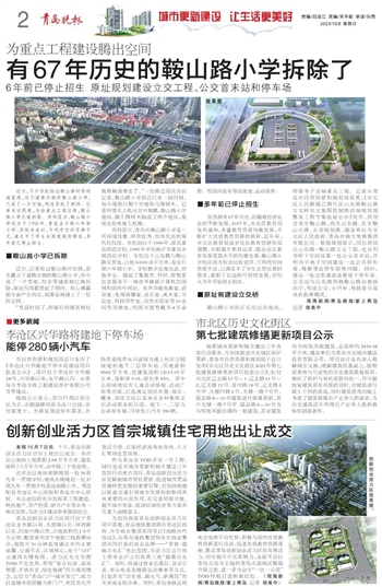 近日,不少市民经过鞍山路时惊讶地发现,位于道路北侧的鞍山路小学,已成了一片空地,周边竖起了围挡。记者采访获悉,为给重点工程让路,鞍山路小学已被拆除。资料显示,鞍山路小学创办于1956年,曾是全日制六年制小学,因校舍老旧,可利用空间资源不足,满足不了学生长期发展的需求,多年前已停止招生。