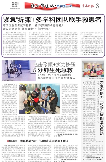 本报10月7日讯 “双节”期间,青岛地铁累计安全运送乘客1182.36万人次,线网总计开行20248列次,日均客运量为147.8万人次,比去年同期增长110%,公共交通分担率超51%。“满载”的地铁人气映射着岛城蓬勃的活力,这场客流大考的背后,凝聚着地铁人的辛苦付出。
