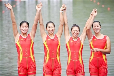 9月24日上午,杭州亚运会赛艇项目女子四人单桨无舵手决赛在富阳水上运动中心进行,青岛姑娘刘晓鑫与队友张书贤、王子凤、徐星叶配合默契,在落后500米的情况下实现逆转,第一个冲过终点,以6分42秒03获得冠军,为中国代表团夺得金牌,这也是青岛运动员在本届亚运会上获得的第一枚金牌。次日上午,刘晓鑫持续发力,与队友配合在赛艇女子八人单桨有舵手比赛中,一马当先,率先冲过终点,为青岛又摘得一枚金牌。