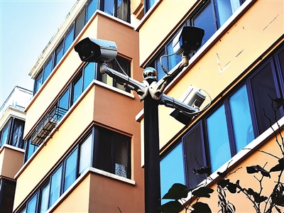 安装在闽江路一小区北门的智慧安防系统监控探头(资料图)。