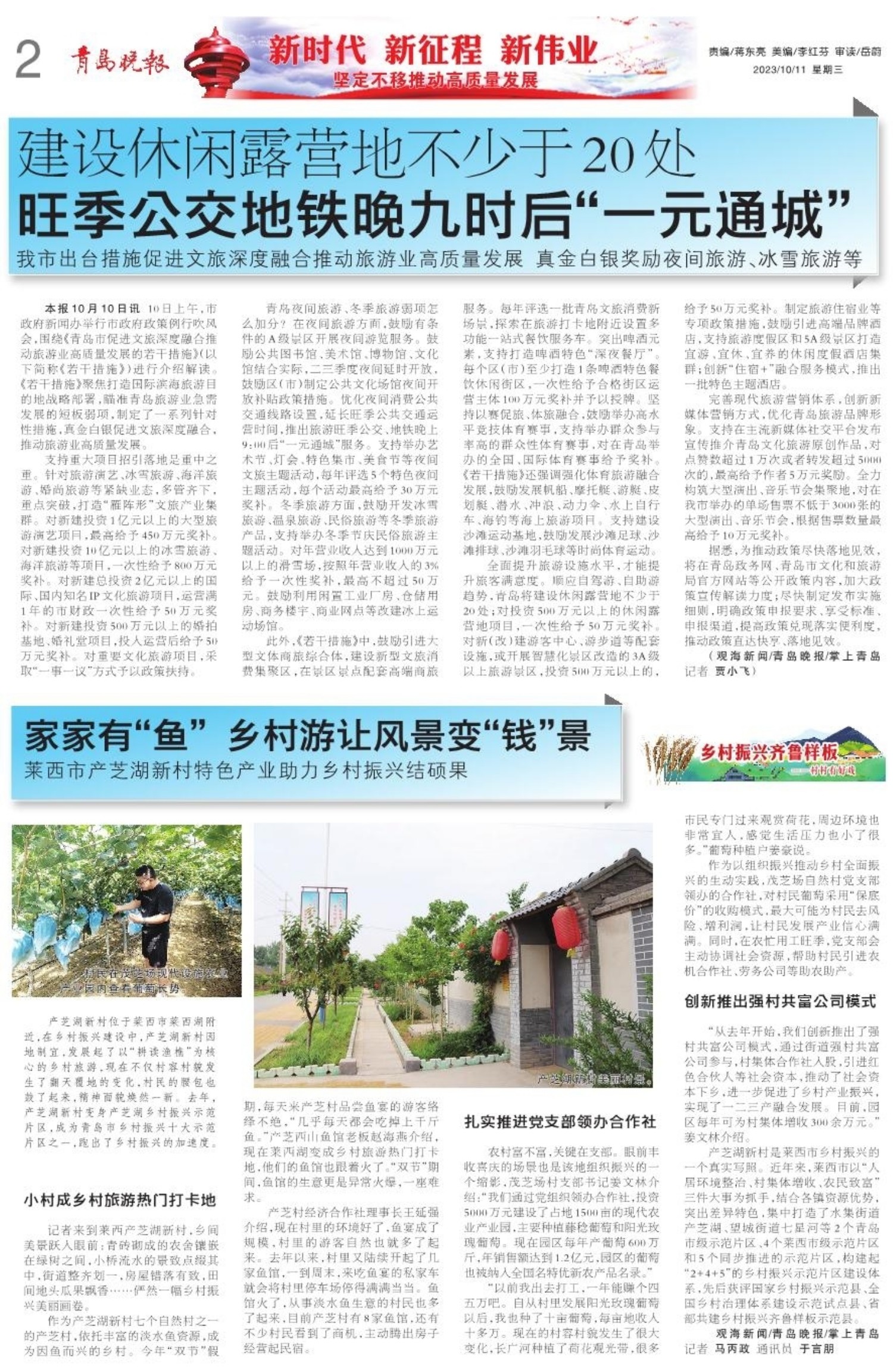 本报10月10日讯 10日上午,市政府新闻办举行市政府政策例行吹风会,围绕《青岛市促进文旅深度融合推动旅游业高质量发展的若干措施》(以下简称《若干措施》)进行介绍解读。《若干措施》聚焦打造国际滨海旅游目的地战略部署,瞄准青岛旅游业急需发展的短板弱项,制定了一系列针对性措施,真金白银促进文旅深度融合,推动旅游业高质量发展。