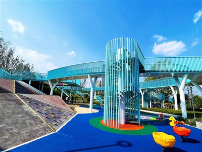 现状体育公园东侧原先地铁施工区域也同步完成整治,占地面积约5000平方米,配置网球场两处、儿童活动场地一处、休闲健身步道一条。完成整治后的体育公园全线贯通,实现了全新升级及扩容,总面积达到6.3万平方米,配置12块运动场地,同时将绿化景观充分融入进去,打造成了可运动、可休闲、可游憩、功能较为完善的时尚运动主题综合性公园。
