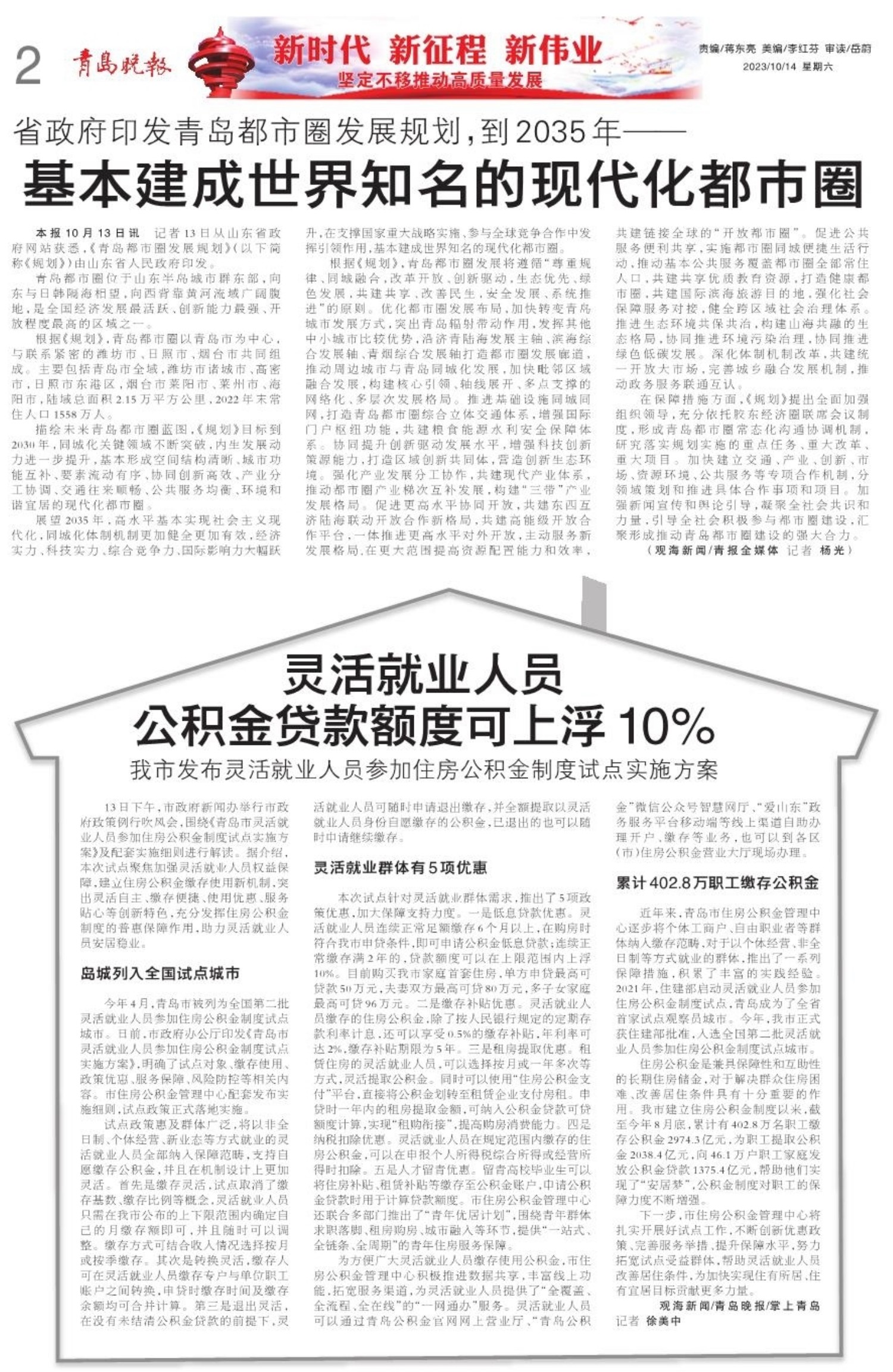 基本建成世界知名的现代化都市圈 灵活就业人员公积金贷款额度可上浮10%