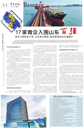 尽管青岛上榜企业的数量与去年持平,但在青岛上榜的17家企业中,不少企业排名有大幅度上升。能入围山东百强榜的企业,大多是企业中的“优等生”,在这些“优等生”的排名中,往前进步一个名次都相对更难。在本次公布的2023山东企业百强榜中,山东省港口集团有限公司和青岛海发国有资本投资运营集团有限公司排名相较于去年有了大幅度的提升。