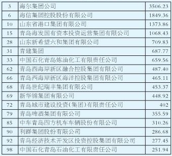 位居百强榜单前十位的企业还有海尔集团公司、信发集团有限公司、山东高速集团有限公司、海信集团控股有限公司、潍柴动力股份有限公司、万华化学集团股份有限公司、山东东明石化集团有限公司、山东省港口集团有限公司。
