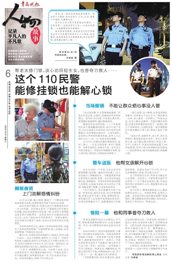 面对复杂的警情,老家在四川的宁夏路派出所110民警何善友早已入乡随俗:在老楼里,他能帮独居老太修理挂锁;面对各种纠纷,他更擅长解开心锁……
