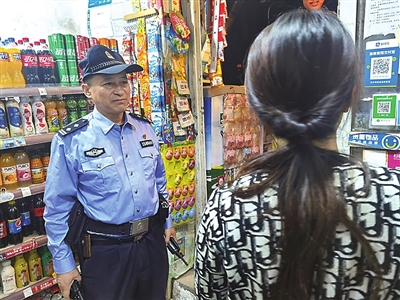 何善友巡逻时在走访群众。 刘卓毅 摄