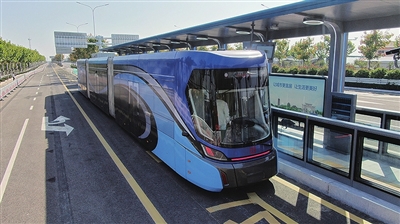 中运量列车是一种新型的交通工具,相较于传统的有轨电车建设工期短、造价低、迁线易;相较于传统公交车运量大、发车效率高。车辆通过车载摄像头和传感器识别地面标线或地面磁钉线,结合车辆全轴控,可实现安全无人驾驶,车辆内部加装了智能运维系统降低全寿命维护成本,而且通过地面信号和控制中心实现车路协同,提高运营效率。