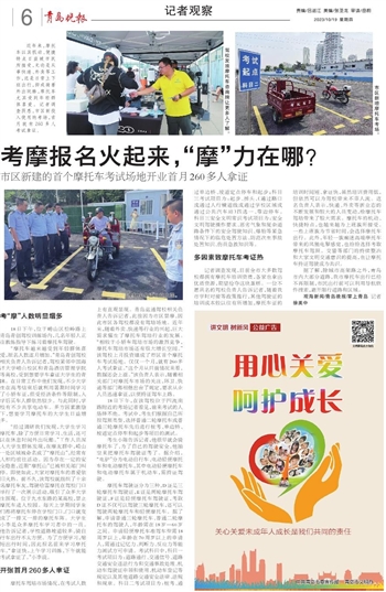 “摩托车越来越受到年轻群体喜爱,报名人数逐月增加。”青岛青创驾校相关负责人告诉记者,驾校紧邻中国海洋大学崂山校区和青岛酒店管理学院等高校,受到想要学车拿证大学生的青睐。在日常工作中他们发现,不少大学生在高考结束后就利用暑期时间学习了小轿车证,但受经济条件等限制,入学后买车人群依然较少。与此同时,学校有不少共享电动车。多方因素激励下,想要学习摩托车的大学生日益增多。