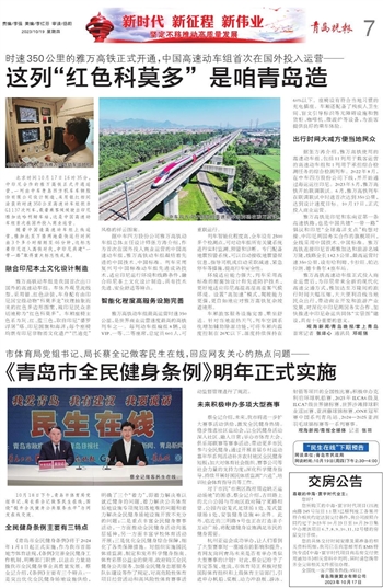 《青岛市全民健身条例》将于2024年1月1日起正式实施,作为我市首部地方体育法规,《条例》完善全民健身工作机制,明晰部门职责,以法治力量助推我市全民健身事业高质量发展。蔡全记介绍,《条例》主要有三个特点:一是突出优化全民健身场地设施供给,明确了三个“着力”,即着力解决难以就近健身的问题,着力解决公共体育场地设施专项规划落地难的问题和着力解决全民健身场地设施开放不充分的问题;二是重点丰富全民健身赛事活动,一方面推动全民健身活动向基层延伸,另一方面丰富学校体育活动开展;三是优化全民健身综合保障,细化了各类保障措施。对组织实施国民体质监测、制定和发布科学健身指南、体育彩票公益金的使用、政府购买全民健身公共服务、加强全民健身志愿服务队伍建设等作了规定,对高危险性体育项目经营活动和高风险性体育赛事活动监督管理进行了规范。