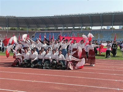 披甲执剑,齐诵“岂曰无衣?与子同袍”;衣袂飘飘,高呼“仰天大笑出门去,我辈岂是蓬蒿人”;琵琶声声,汉服女孩挥扇起舞,旋转跳跃……这两年盛行的国潮风也吹到了运动场上,不少学生方阵身着古装“穿越时空”,将风度翩翩与活力四射融合起来,展现中华文化之美。