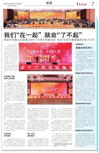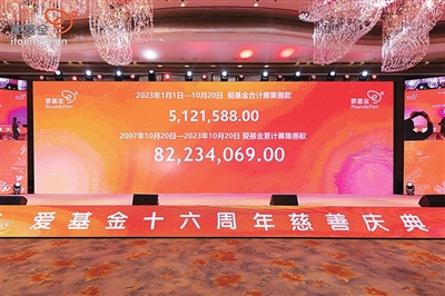 积少成多,聚沙成塔。在社会各界的大力支持下、在爱心企业和爱心人士的积极参与下,截至晚宴结束,爱基金2023年度共募集善款538.3万元。