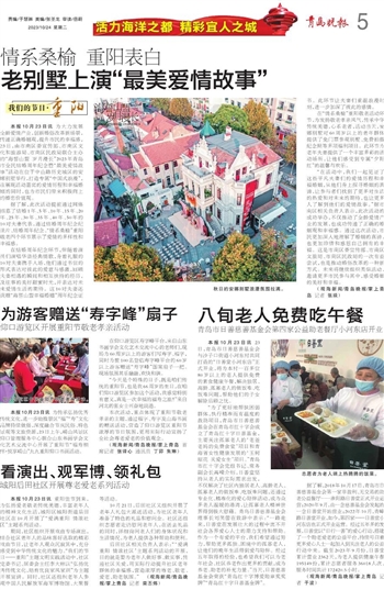 后田社区相关负责人表示:“‘爱满重阳 情浓社区’主题系列活动的开展,目的就是要为老年人做好事、做实事,传递社区关爱,用实际行动提升社区老年群体的幸福感,营造浓厚的尊老、敬老、爱老、助老氛围。” (观海新闻/青岛晚报/掌上青岛 记者 栾丕炜)