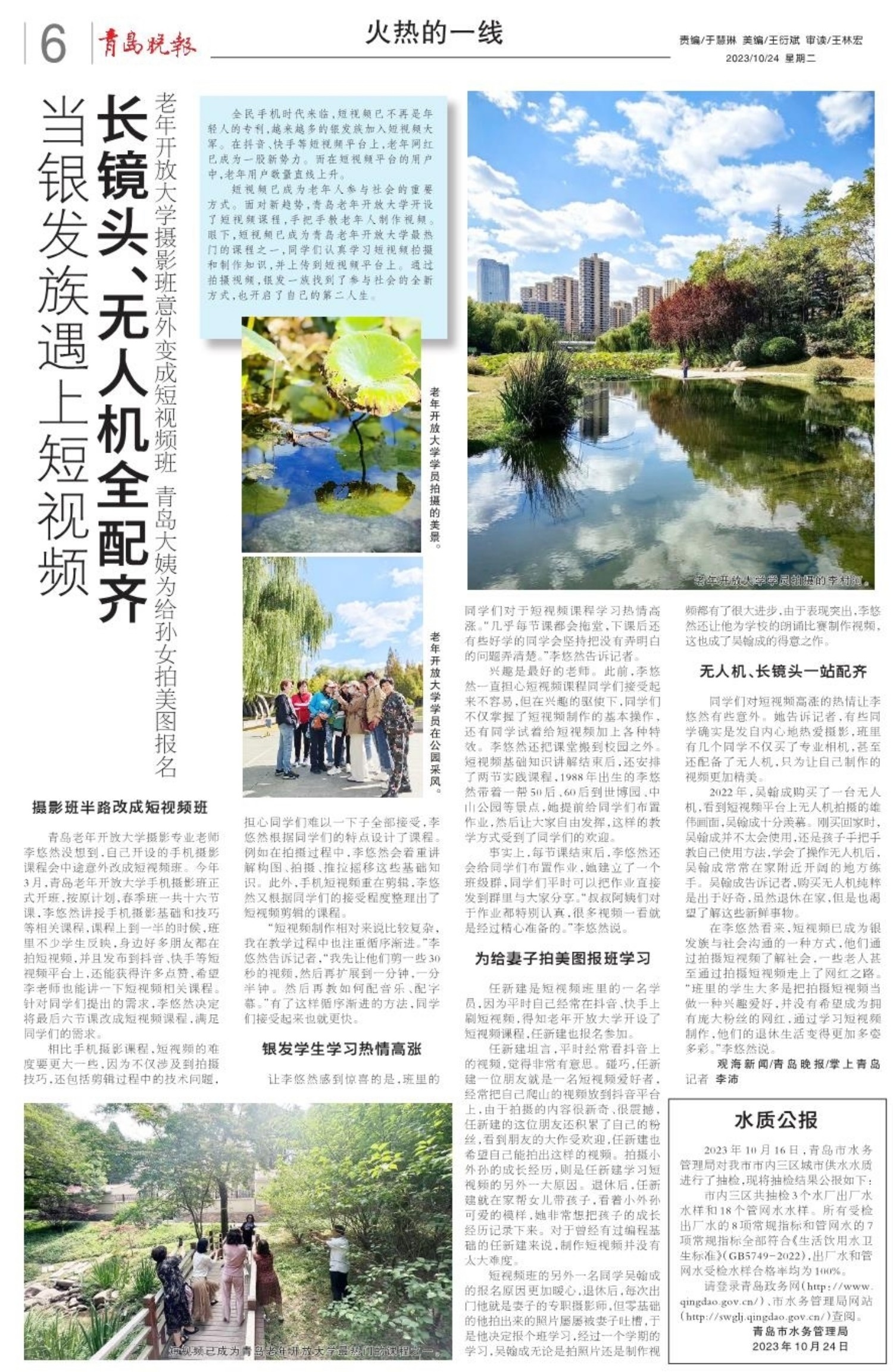 短视频已成为老年人参与社会的重要方式。面对新趋势,青岛老年开放大学开设了短视频课程,手把手教老年人制作视频。眼下,短视频已成为青岛老年开放大学最热门的课程之一,同学们认真学习短视频拍摄和制作知识,并上传到短视频平台上。通过拍摄视频,银发一族找到了参与社会的全新方式,也开启了自己的第二人生。