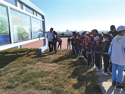 采访第一站,小记者来到一处占地约500亩、高约50米的山坡。“这里是由1400万吨垃圾堆积而成,目前内部正在发酵,产出的沼气用来发电。”青岛市城市管理局工作人员向小记者介绍道,这里是小涧西固体物生活垃圾填埋场(一期),于2018年底终场封场,为提升整体环境,2021年小涧西填埋场实施综合整治生态恢复,现在这里已经变身成为一座集环保科普教育、园区参观游览及休闲为一体的小型山顶公园。