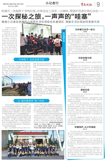 我们看到成堆的垃圾像小山一样,几个大机器“爪子”,分别抓起垃圾放进另一个车间,进行无害化处理、焚烧,变废为宝。接着我们来到崂山海之恋公园公厕参观精细化保洁作业,在这里工作的环卫工人真是太辛苦了,向他们致敬。