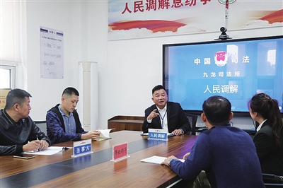 薛峰(中)律师现场为矛盾纠纷双方进行调解。徐常青摄