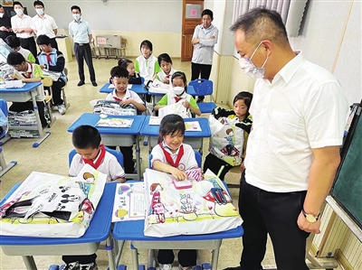 平度张舍小学的学生收到“诺亚基金”资助的爱心文具大礼包。