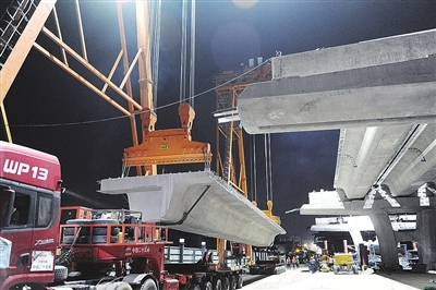 深夜架梁现场。