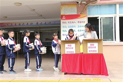 本报11月3日讯 近日,青岛四方小学在校园里发起爱心捐赠图书倡议,组织全校少先队员们“捐一本图书,献一份爱心”活动,学生们积极捐出自己珍爱的书籍为偏远山村贫困地区的小伙伴们改善阅读环境。