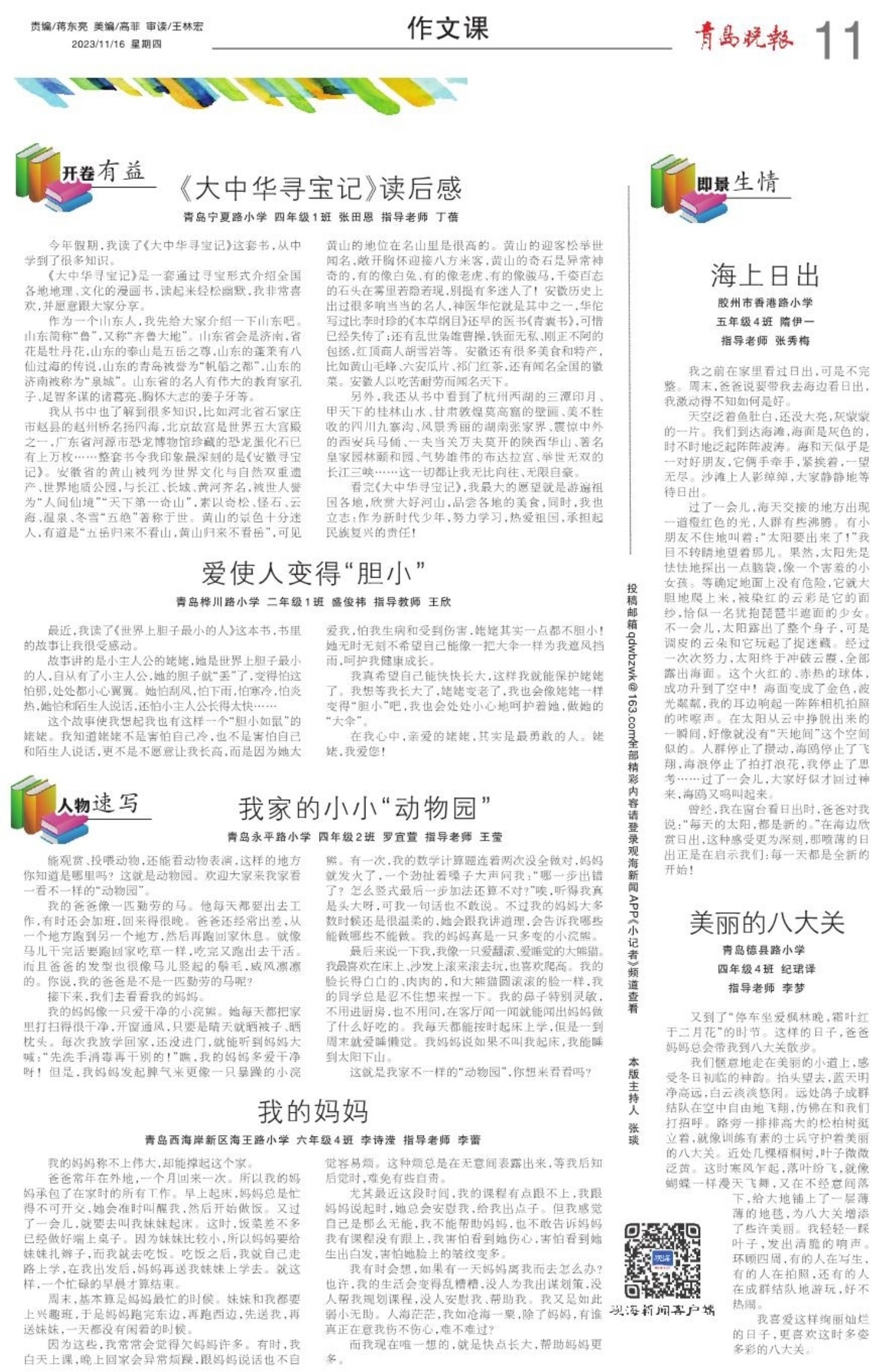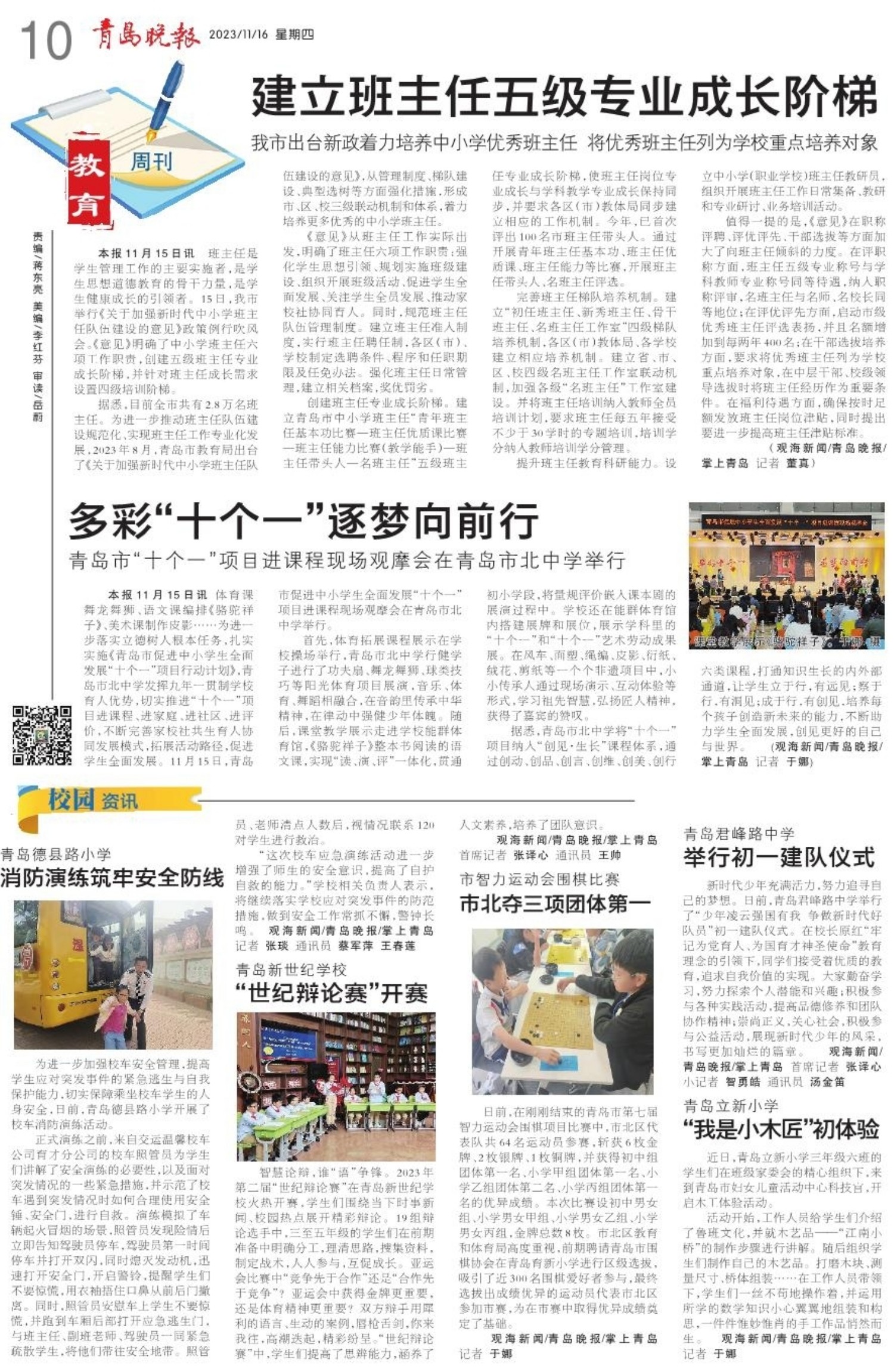 A01 头版 A02 活力海洋之都 精彩宜人之城 A03 权威发布 A04 民生新闻 A05 城事 A06 乡村振兴齐鲁样板 A07 区市新闻 A08 人物故事 A09 资讯 A10 教育周刊 A11 作文课 A12 小记者