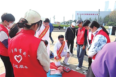 15日上午,青大附院大型送健康义诊系列活动在五四广场正式开启,来自儿科、口腔科、肿瘤科、泌尿外科、器官移植中心等17个科室的专家云集。义诊活动刚一开始便吸引了大批市民,他们在志愿者的引导下有序咨询,与义诊专家们进行面对面沟通。“您之前有接受过哪些方面治疗?”“您的症状持续多久了?”专家们耐心地为市民查看报告、分析病情、解答疑难问题,为前来问诊的群众量血压、测血糖并进行健康知识的科普和健康行为的指导,发放健康科普资料。同时,护理团队开展了以“守护生命,‘救’在身边”为主题的急救知识和技能培训,现场讲解心肺复苏要点并演示AED的使用,市民们学习热情高涨,积极参与练习。