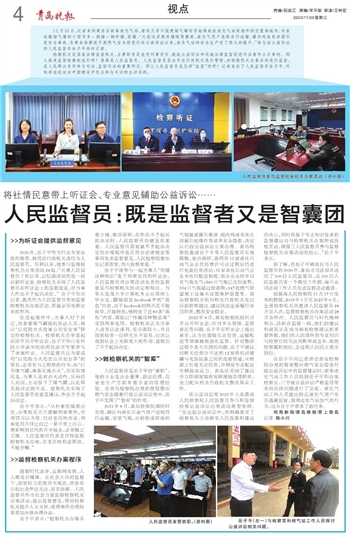 据最高人民检察院11月17日发布的数据,2019年1月至2023年6月,全国检察机关共邀请人民监督员44万余人次,监督检察机关办案活动28万余件次。人民监督员与时代精神契合,活跃在监督一线,他们的建议和意见正在成为制发检察建议的重要依据,他们的人民情怀和专业知识与检察官的司法判断形成互补,助推检察履职到位、全过程人民民主落实到位。