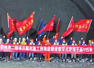 本报11月28日讯 27日,胶州湾第二隧道黄岛海域段服务隧道顺利开挖到最深点距海平面115米处。