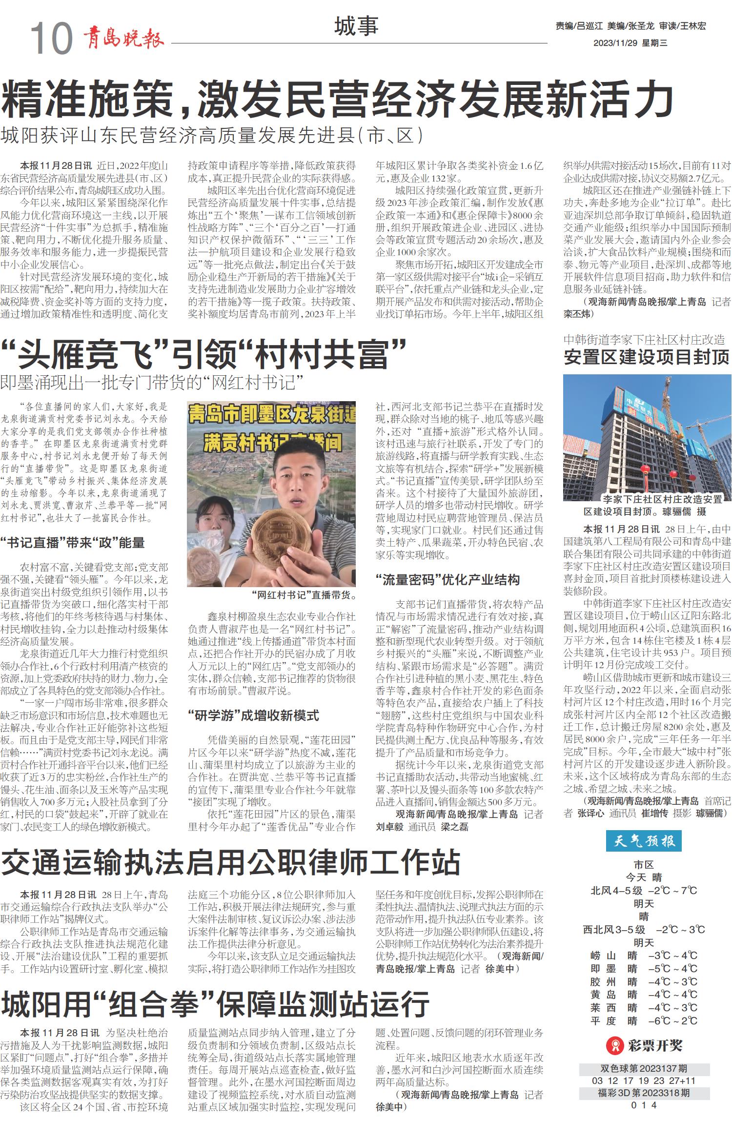 A01 头版 A02 新时代 新征程 新伟业 A03 乡村振兴齐鲁样板 A04 视点 A05 记者观察 A06 活力海洋之都 精彩宜人之城 A07 城事 A08 城市更新建设 让生活更美好 A09 民生新闻 A10 城事 A11 艺术之城 A12 艺人匠心
