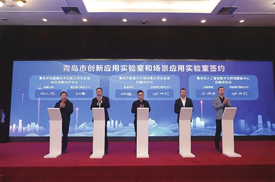 浦发银行青岛分行行长张湧在青岛市新经济新动能高质量发展推介会上签署技术创新战略合作协议。